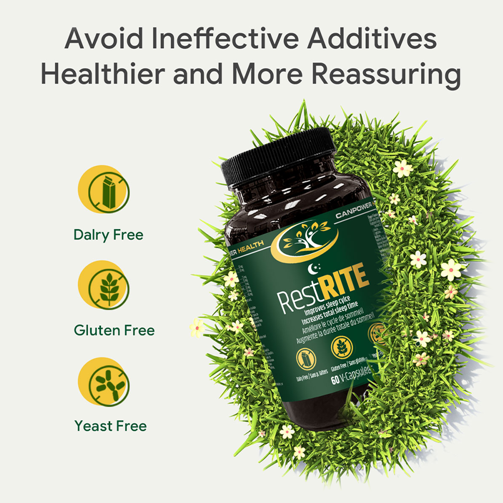 RestRITE is a natural, multi-dimensional sleep aid designed to promote restful, restorative sleep by supporting relaxation, reducing sleep latency, and resetting the body’s sleep-wake cycle. This comprehensive formula includes calming amino acids, sleep-regulating melatonin, and traditional herbal extracts like Valerian, Passionflower, and Lemon Balm—each known for their role in easing restlessness and promoting sleep.